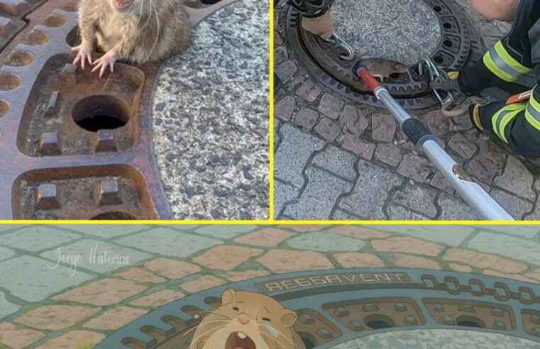 Rescatan una rata gorda atorada en la tapa de una alcantarilla
