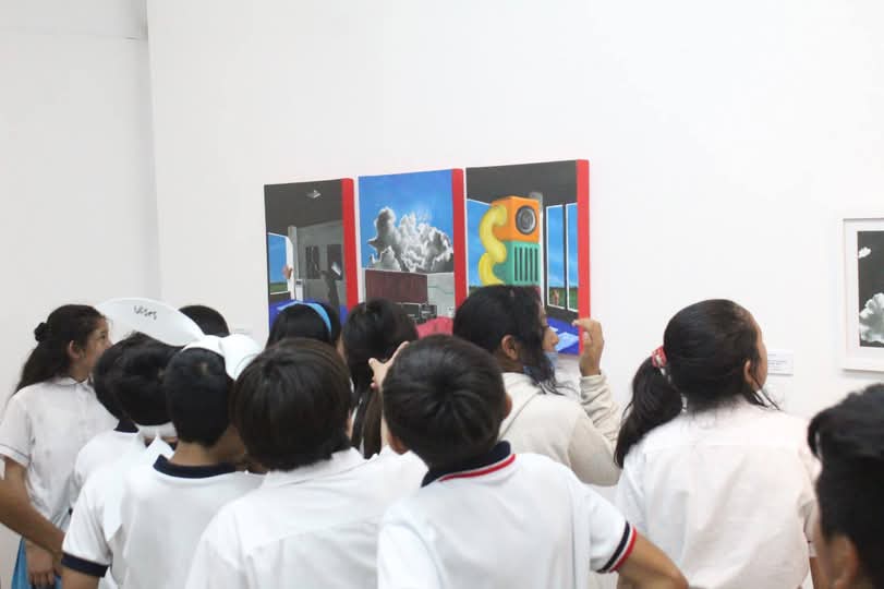 La presencia de los grupos de estudiantes de 4to. a 6to. año de primaria pintó un escenario vivo de convivencia con el artista y su concepto de lo urbano que por unas horas llenó el centro cultural de expresiones de asombro, risas y preguntas sobre la muestra.
