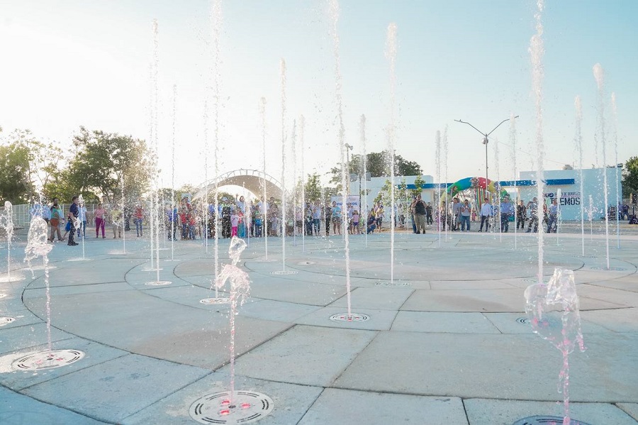 Y en gran cierre, encendió por primera vez una fuente dinámica que dará la bienvenida a quienes visiten el parque ubicado en la colonia Yucalpetén.