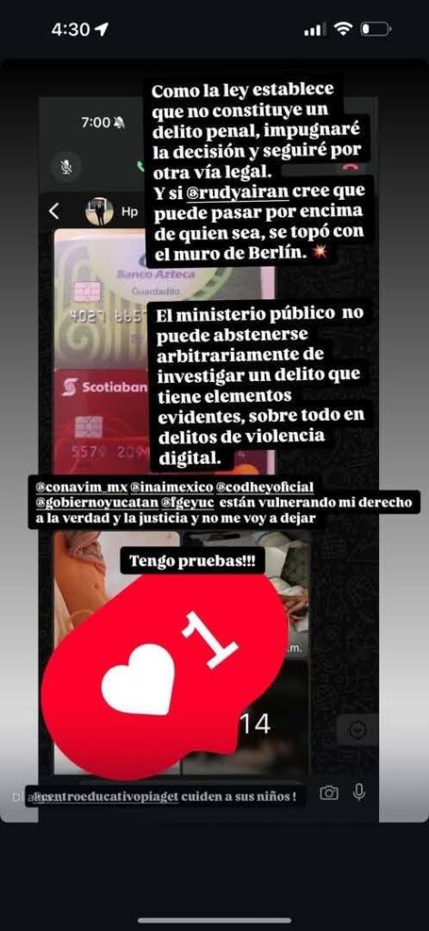 En su denuncia no pudo probar que quien filtró las fotos fue la persona que ella denunció, es decir el ex regidor meridano, y no conforme con la resolución emprendió una campaña mediática tratando de salirse con la suya.