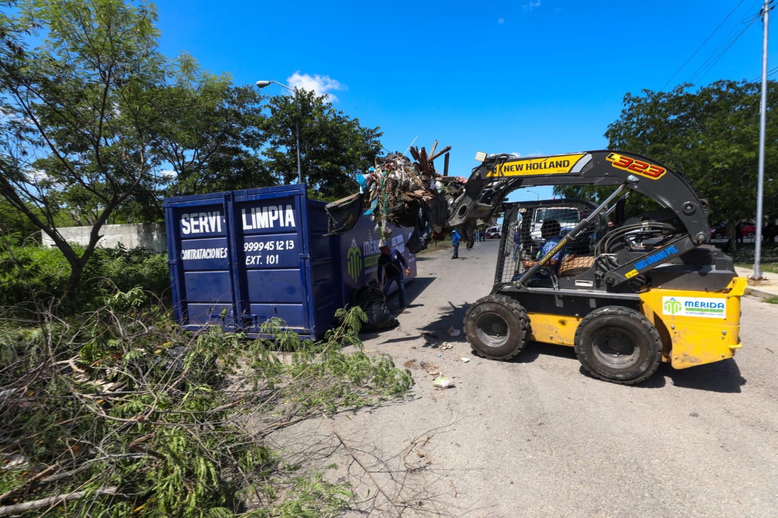 El operativo de limpieza de baldíos de este lunes inició sobre la calle 39-A por 112 y 112-A continuando sobre la calle 39-A hasta la Avenida calle 114 del fraccionamiento Caucel II. En las labores participaron cuadrillas de la dirección de Servicios Públicos y de la paramunicipal Servi-Limpia, quienes con apoyo de maquinaria se encargaron de trasladar los residuos a los contenedores. En esta ocasión se recolectaron bolsas, plásticos, envases, botellas, cacharros, llantas maderas, entre otros.