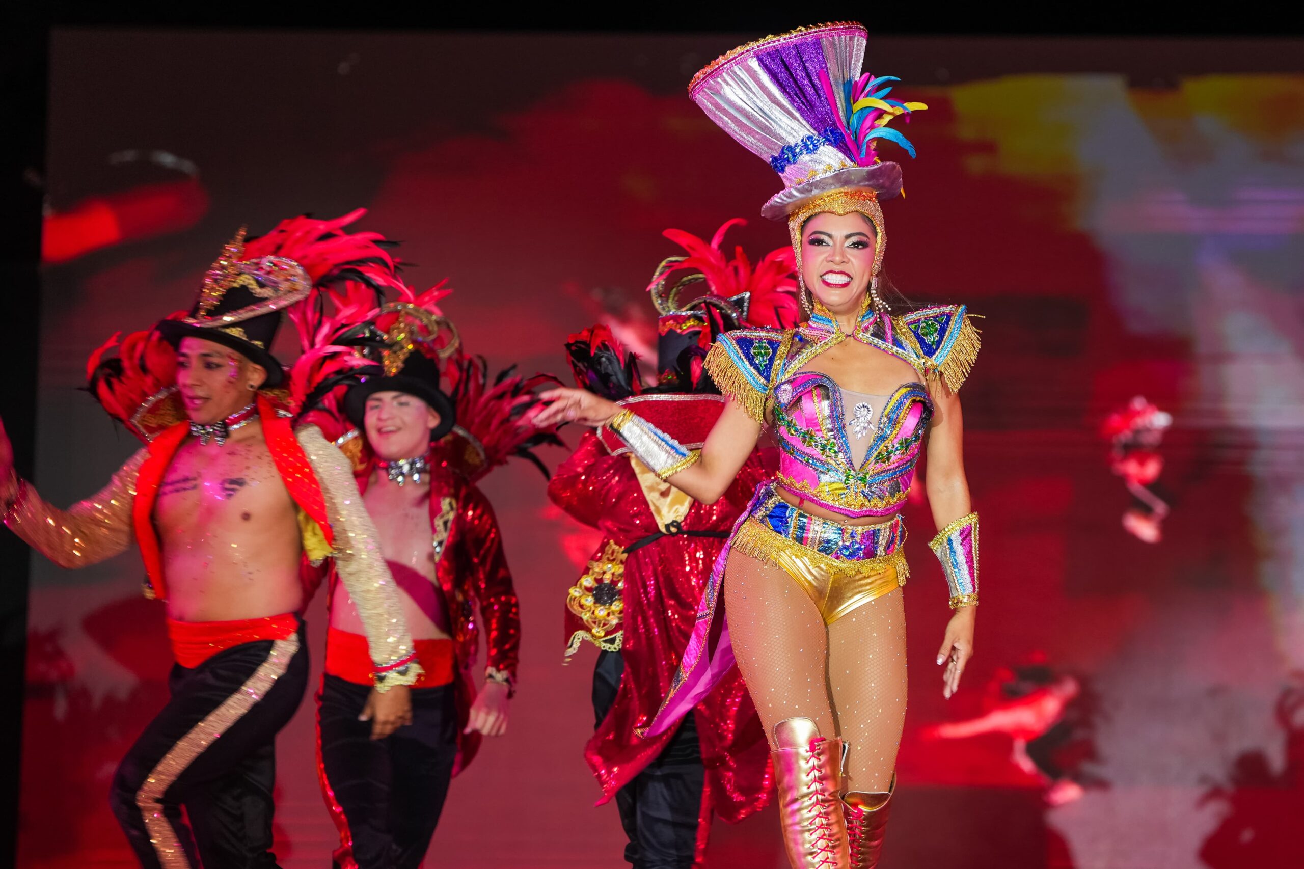 ¡El telón del Gran Show se abrió con todo! Más de cuarenta bailarines, músicos, cantantes y los 12 reyes y reinas, inundaron el escenario con su energía, dejando su alma en cada nota y movimiento, ataviados con trajes deslumbrantes llenos de brillos, piedras y colores que hipnotizaron a la multitud, ataviados de payasos, mimos, caramelos, presentadores y hasta pulsadoras de circense.