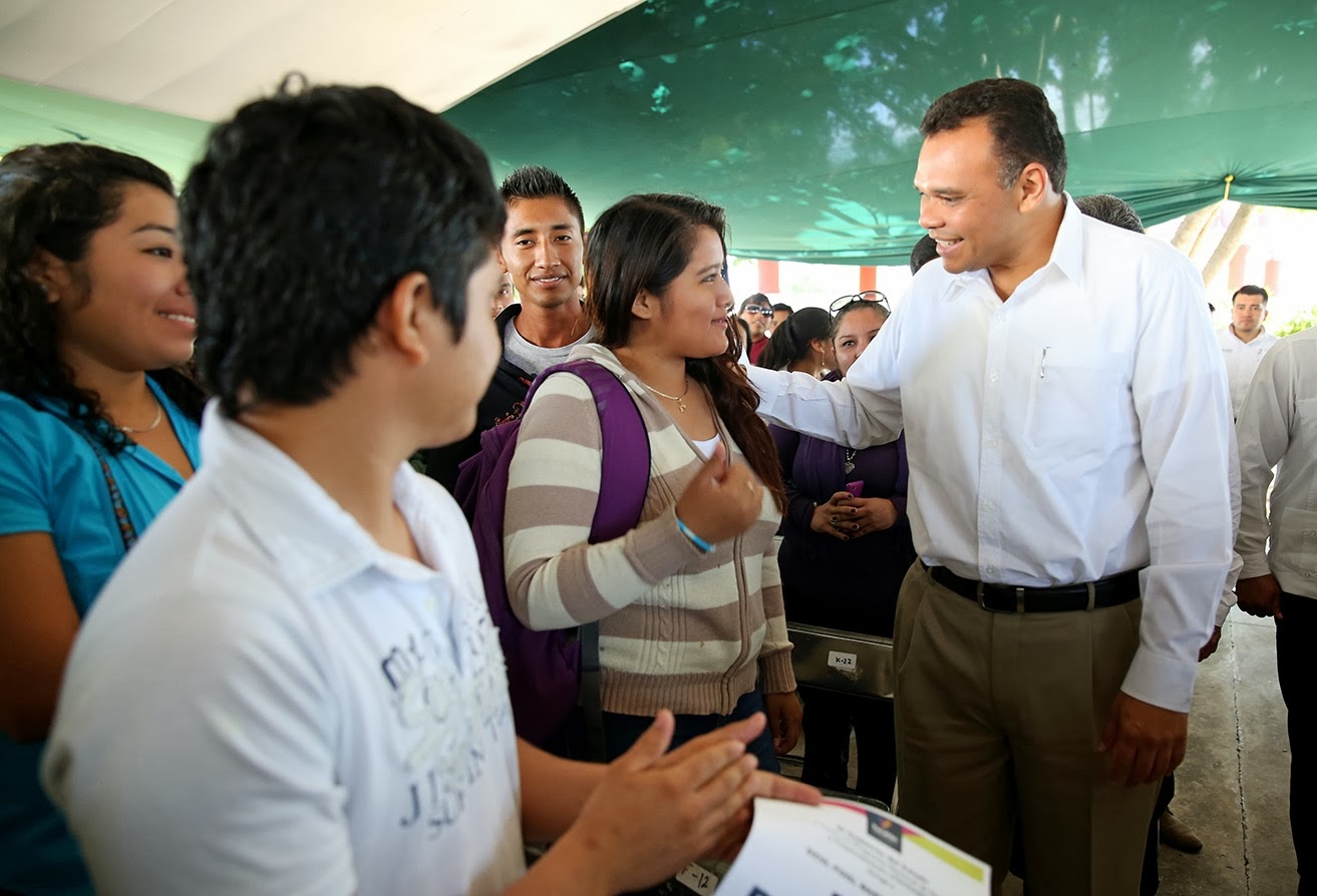 Mérida, Yucatán, 28 de noviembre de 2013.- A fin de evitar que los estudiantes abandonen su formación por falta de recursos, durante el ciclo 2013-2014 el Gobierno del Estado, en un esfuerzo conjunto con la federación, entregará más de 12 mil 200 becas a alumnos de 23 universidades tecnológicas y escuelas normales, con una inversión de 120 millones de pesos, lo que representa un incremento del 30 por ciento respecto al curso escolar pasado.