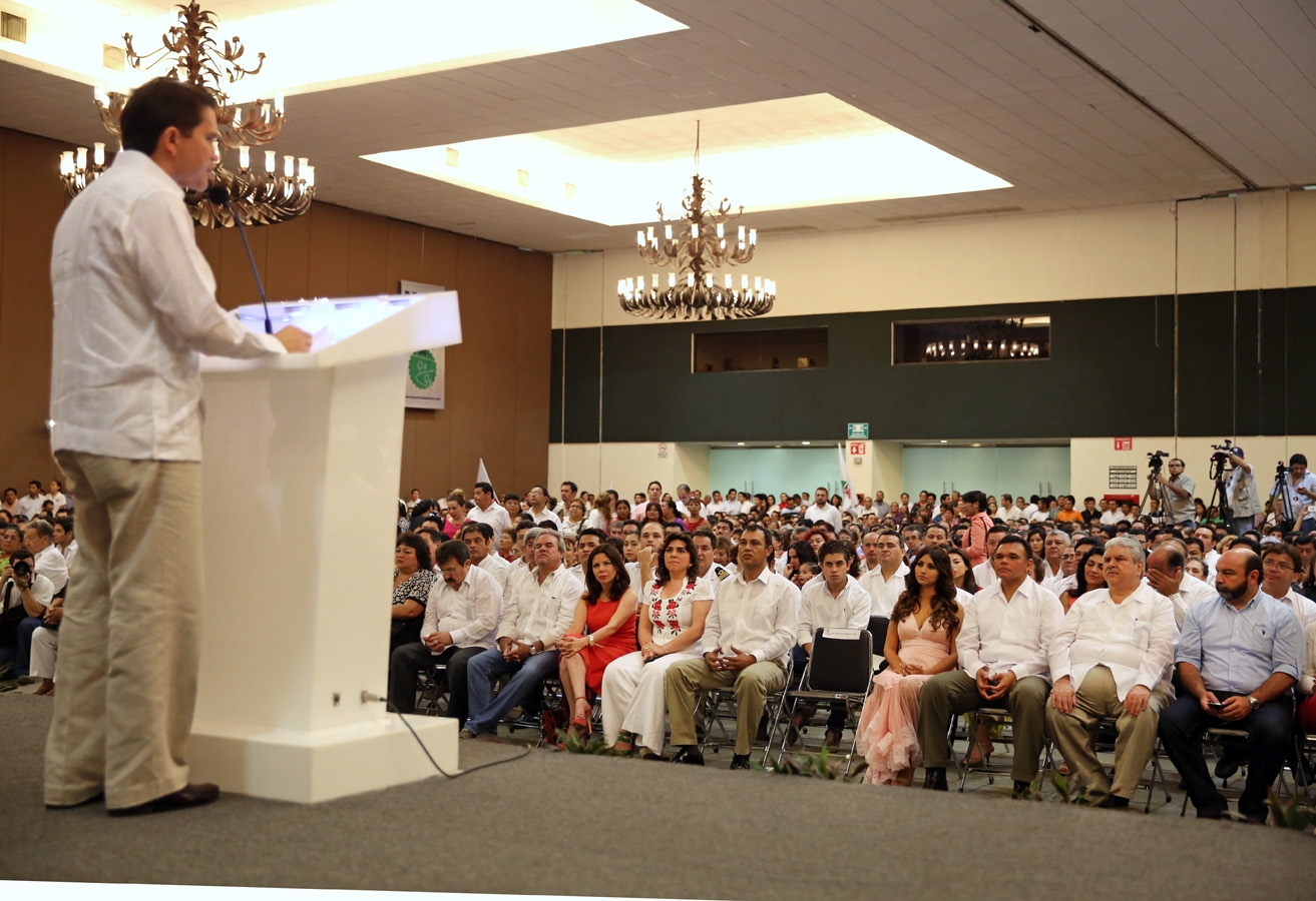 Durante el evento, el mandatario estatal atestiguó -junto con el diputado federal Carlos Aceves del Olmo, la ex Gobernadora Ivonne Ortega Pacheco, funcionarios estatales, federales y municipales, así como legisladores y ciudadanos- el reporte pormenorizado de Sahuí Rivero sobre la labor que realiza en la Cámara de Diputados a favor del desarrollo de Yucatán.