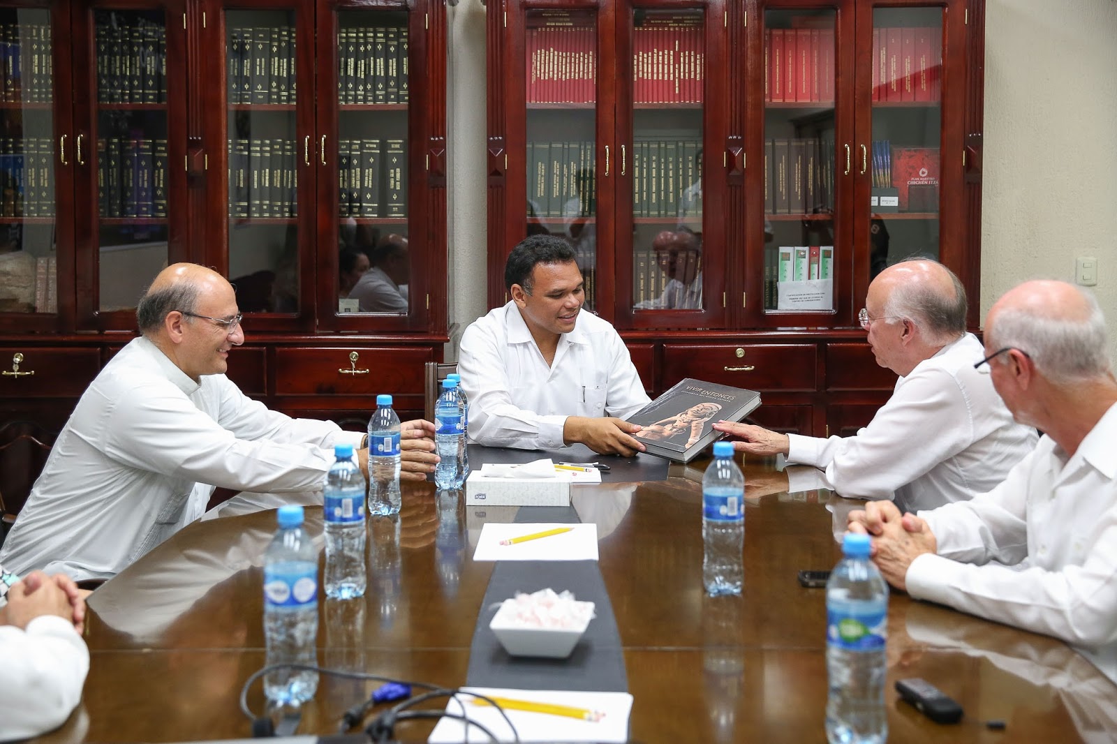 En reunión privada efectuada en la Dirección General de Relaciones Públicas del Gobierno del Estado, el rector -quien visitó la entidad con motivo del 15 aniversario de la Escuela de Medicina de la Universidad Anáhuac Mayab- compartió puntos de vista con el mandatario sobre los avances realizados en el Parque Científico y Tecnológico de Yucatán, así como de otros temas torales en el rubro académico.