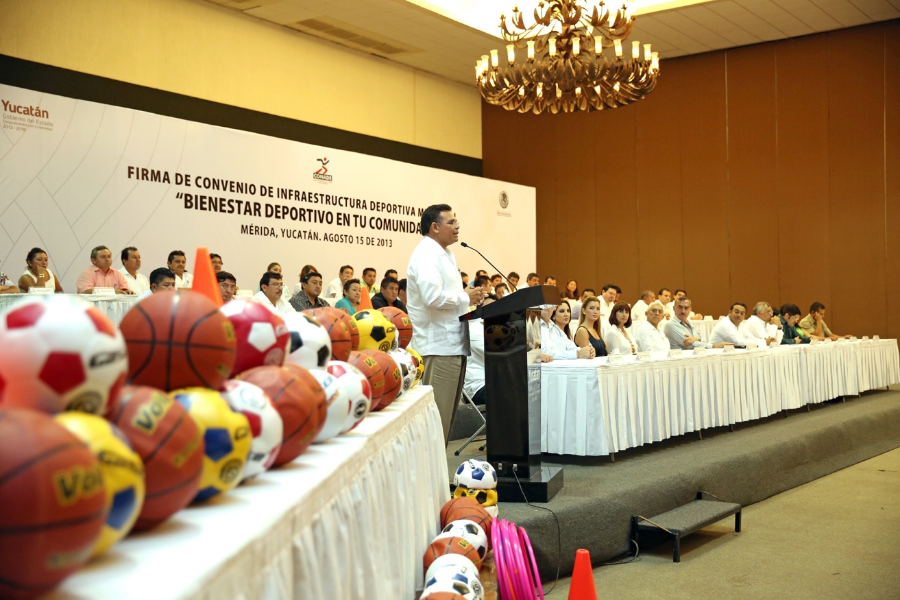 El Gobernador Rolando Zapata Bello y el presidente de la Comisión de Cultura Física y Deporte del Cámara de Diputados, Felipe Muñoz Kapamas, atestiguaron la firma de un convenio de colaboración, a cargo de los alcaldes de los municipios beneficiados, para la ejecución de dichos recursos a través de Proyectos de Infraestructura Deportiva Municipal de la Comisión Nacional de Cultura Física y Deporte (CONADE) y de Desarrollo Regional de la Zona Henequenera.