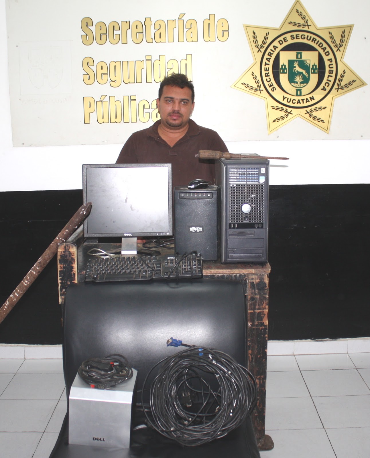 Policías estatales detuvieron a Eduardo Arturo López Leyrana, de 36años de edad, por apropiarse del equipo de computo de la escuela primaria»Nezahualcóyotl».