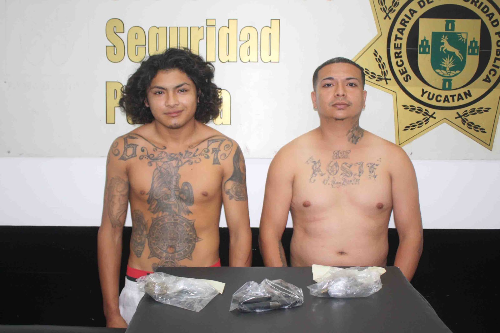 Son Juan Salomón Cecilio Senicero, de 27 años de edad, y Didier Daniel May Rosado, de 18 años. Al primero se le aseguró una pistola tipo escuadra calibre .32 que portaba en la cintura, con un casquillo percutido, y cannabis como para elaborar cuatro cigarros; el segundo, May Rosado, tiene tres ingresos a la cárcel pública por robo a casa habitación, vandalismo y disturbio.