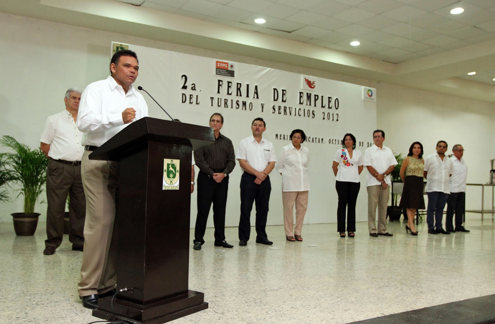 Al inaugurar la segunda edición de la Feria de Empleo del Turismo y Servicios, el Gobernador del Estado Rolando Zapata Bello, afirmó que su gobierno trabajará para generar las condiciones de estabilidad y certidumbre, que permitan que las empresas creen los empleos necesarios y los ingresos justos que se requieren para el sustento de los yucatecos.