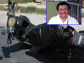 Esta mañana, alrededor de las 11 horas, el reportero Alfredo «Chino» Canto May sufrió un accidente tras derrapar con su motoneta en la calle 29, entre 40 y 42, en Progreso, media cuadra antes de la Prepa Progreso.