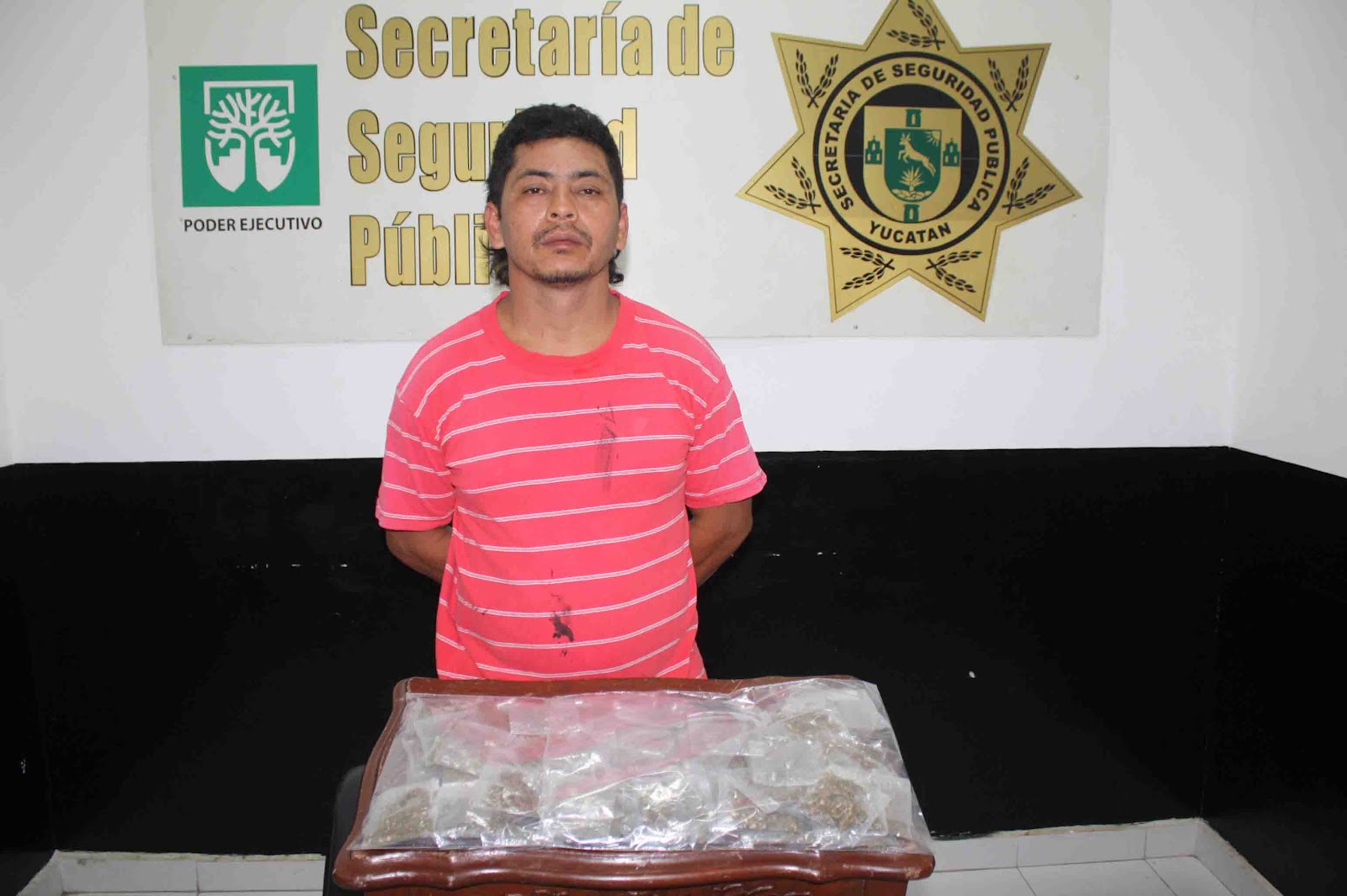 Elementos de la SSP detuvieron anoche con 93 bolsitas de mariguana a Juan Gabriel Chan de 38 años de edad.
