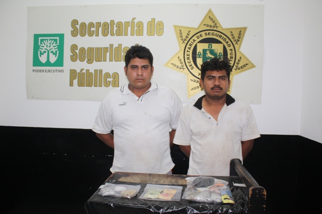 En la compra venta de droga se encontraban César Emmanuel Barrientos Ventura y Carlos Gabriel Jiménez Martín cuando fueron detenidos por elementos de la SSP en la calle 68 por 155 y 157 de la colonia San José Tecoh.