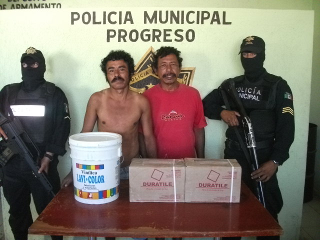 Los agentes de la Policía de Progreso los detuvieron con el cargamento y los trasladadaron a la comandancia de policía a bordo de la unidad 7030 al mando del Sub-Oficial. Carlos G. Hernández Carrillo.