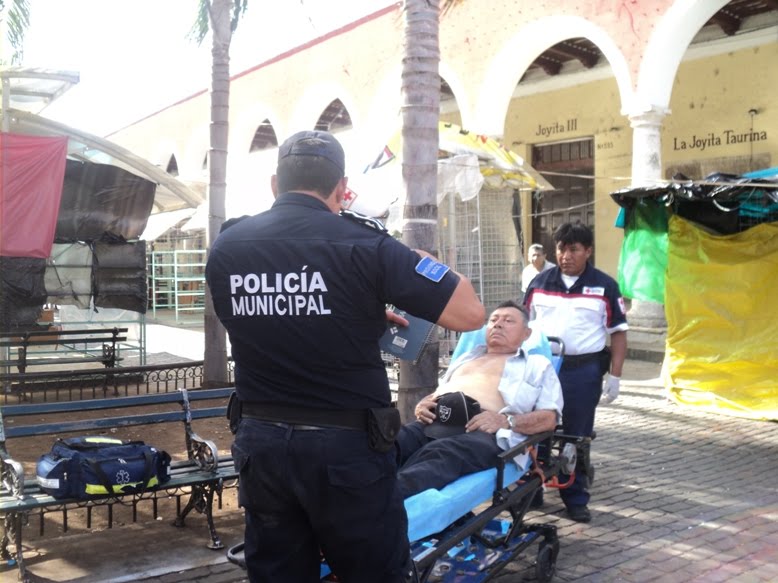 El hombre fue rescatado por transeúntes y policías y posteriormente atendido por paramédics de la Policía Municipal de Mérida.