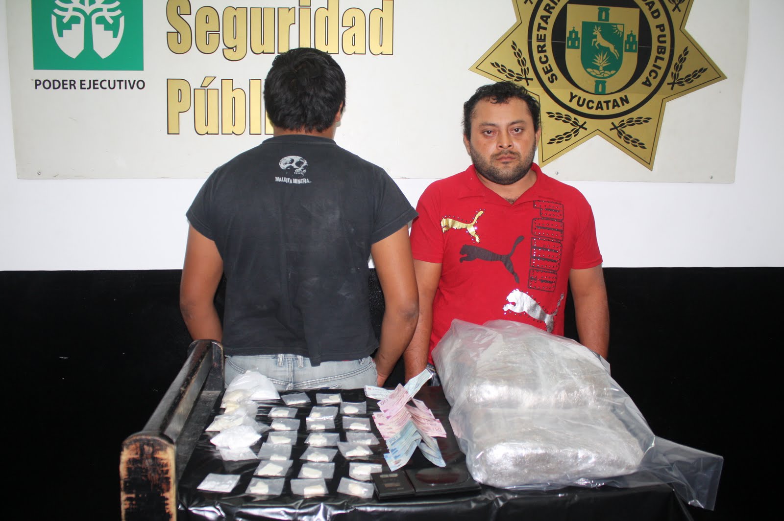 Elementos de la Secretarúa de Seguridad Pública detuvieron a David Adrián Chi Cat de 27 años de edad y el menor A.A.K.C., con más de 4 kilogramos de mariguana, 23 bolsitas de piedras crack y 3 de cocaína en polvo.