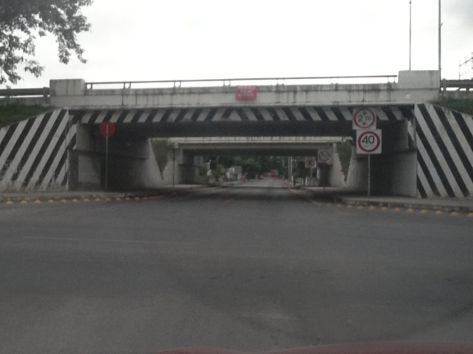 Debido a que es puente es más bajo que los demás quien lo colocó no tuvo tanto problema para poner una escalera y fijar el anuncio sobre el túnel.