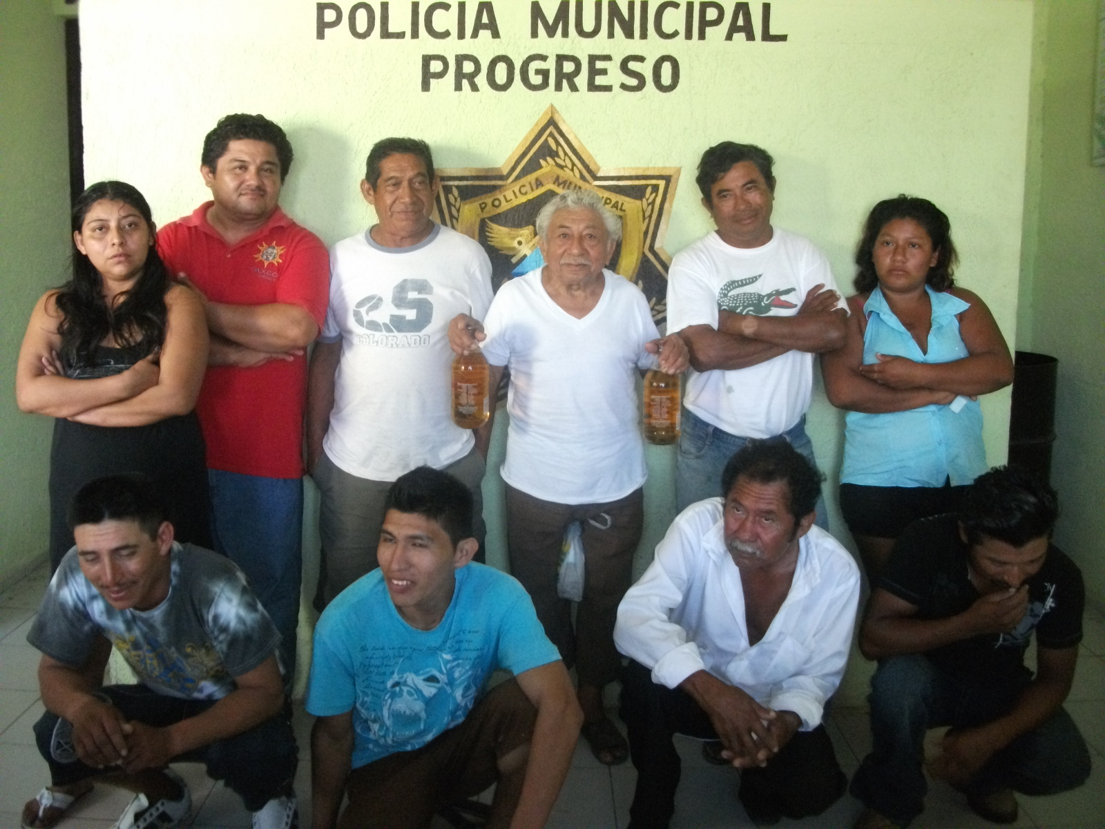 Se detuvo a VÍCTOR MANUEL RODRÍGUEZ ACOSTA, de 64 años; CARLOS JESÚS GONZÁLEZ LIZAMA, de 34; GASPAR PECH TOLEDANO, de 23, RICARDO MANUEL RAMÍREZ RUIZ, de 55 años; PEDRO CHAN, de 66 años, JORGE ROMERO LUGO, de 43 años; MARCOS ANTONIO RAMÍREZ RUEDA, de 19, MARÍA DE JESÚS GALEANA RODRÍGUEZ, de 21 años, TERESA DE JESUS RAMIREZ RUEDA de 21 años, con domicilio en el hotel carismar.