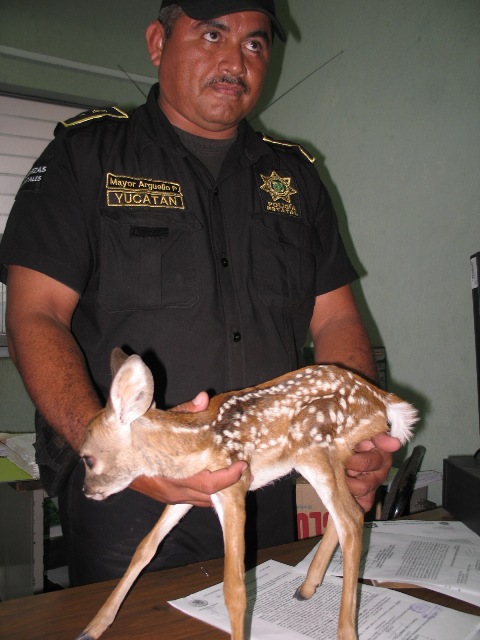 José Nicolás Nahuat Martínez, de 44 años de edad, hizo entrega de la cría de venado cola blanca al comandante Maylor Arguello.