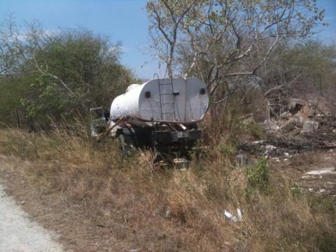Pipa con agua derechito al monte: se le reventó una llanta en la Mérida-Progreso
