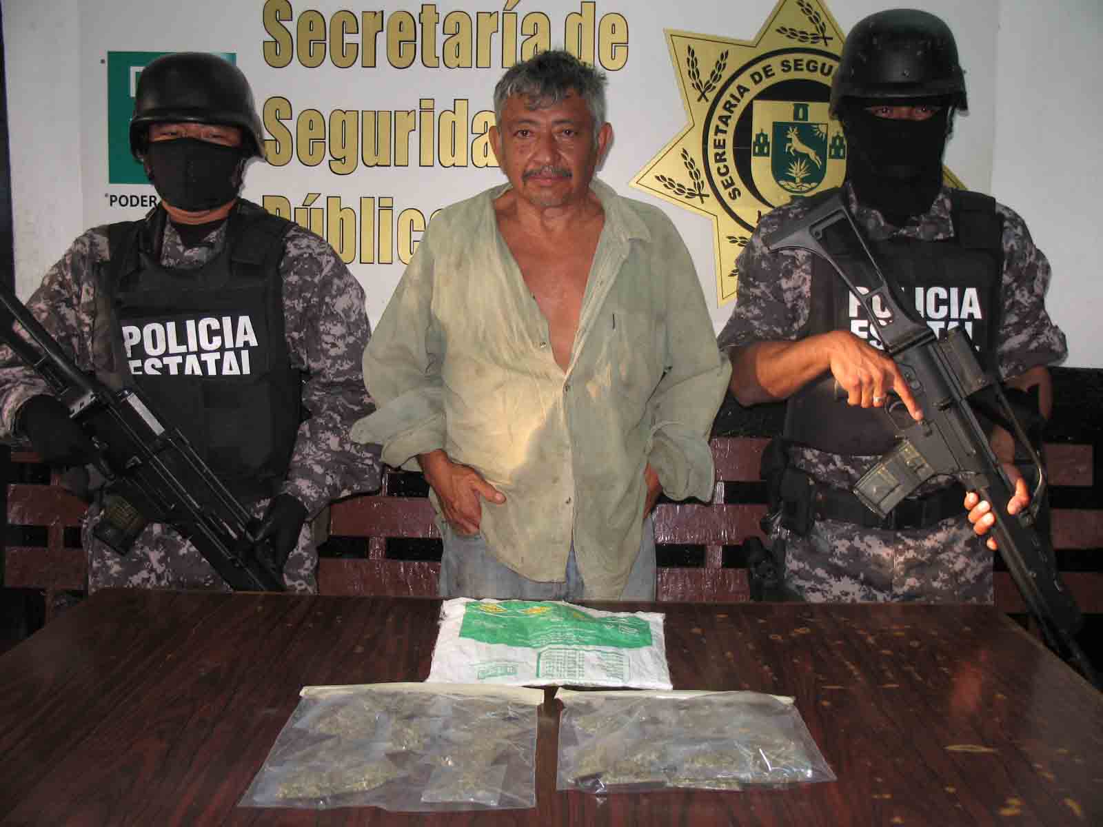 Elementos de la Secretaría de Seguridad Pública detuvieron a Jorge Isidoro Lizarraga Alcocer, de 56 años de edad, en posesión de 31 bolsitas de mariguana, además de que el automóvil en que se trasladaba tenía placas sobrepuestas.