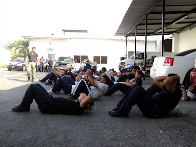Los polis se ejercitan en la mañana y en la tarde, de acuerdo a un rol escogido especialmente para evitar que los malandrines aprovechen la ausencia de los agentes cuando hacen ejercicio.