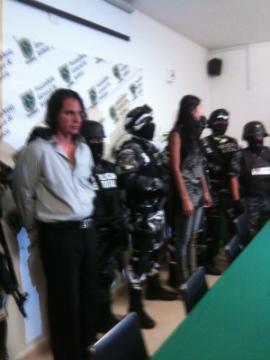 Karina Lomassi originaria de Venezuela y Pierrot, mexicalpan de las tunas, fueron presentados hace unos momentos como los cerebros del asalto a la joyeria de Altabrisa.