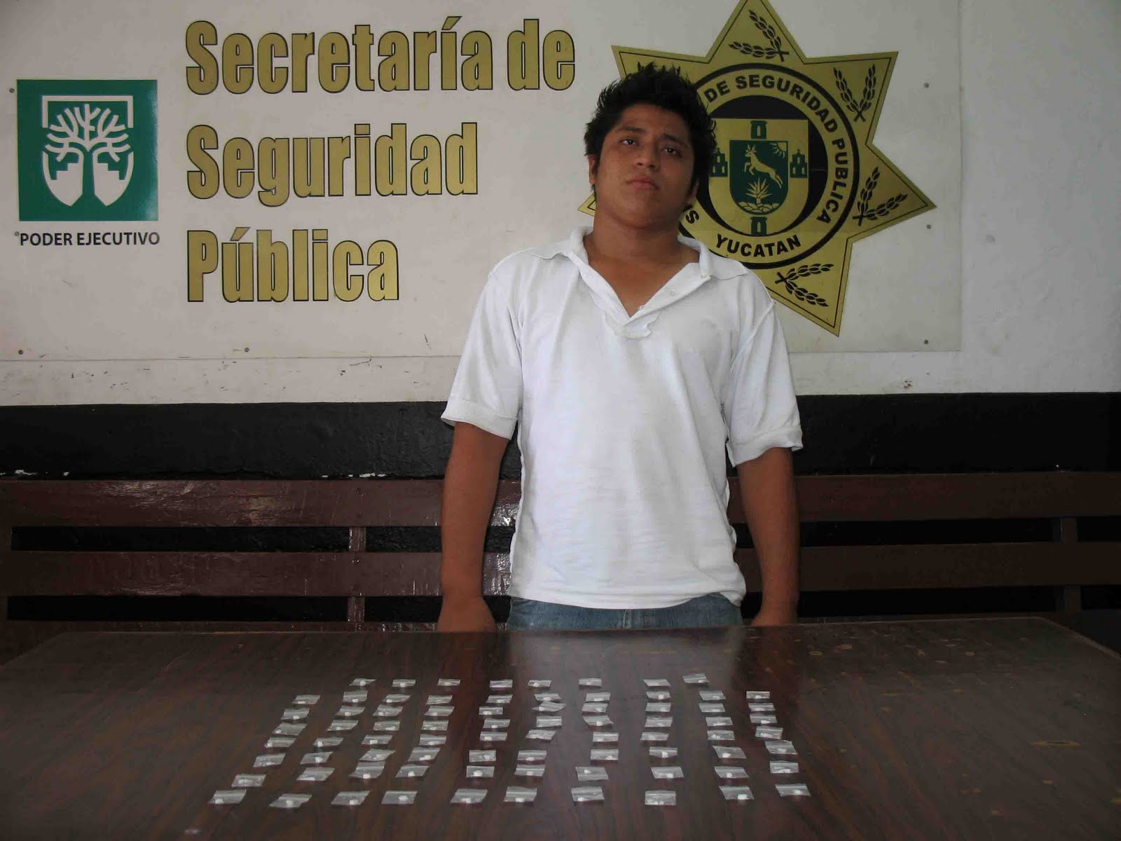 En primera instancia fue detenido en la colonia San Esteban Pedro Pablo Rodríguez Carballo de 21 años con 78 piezas de crack, cuando caminaba por la calle 75 por 72 y cuando vio a la unidad policiaca dejó caer una bolsa de nylon y corrió, al darle alcance y revisar el contenido se le encontró la droga.
